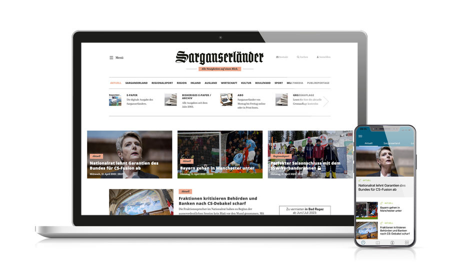 Wir freuen uns, dass wir für die Sarganserländer Druck AG die Website in technischer sowie designtechnischer Hinsicht überarbeiten durften. Ausserdem haben wir in Zusammenarbeit mit APA IT die neue «Sarganserländer»-App generiert. Sie macht die mobile Nutzung alle Online-Inhalte der Tageszeitung «Sarganserländer» wesentlich komfortabler und funktioniert auf allen gängigen mobilen Endgeräten.